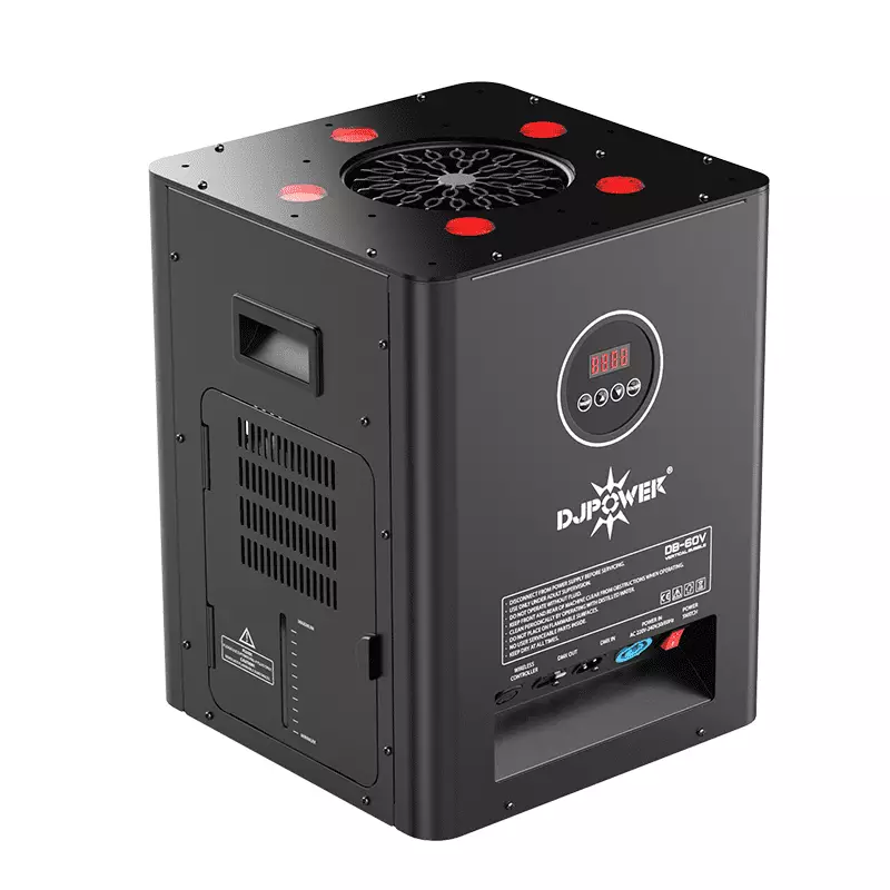 The DB-60V is a newly released vertical bubble machine from DJPOWER, designed to deliver impressive bubble effects with vibrant lighting. Powered by a high-performance built-in fan, it can shoot bubbles vertically up to 4–5 meters. Equipped with five 8W RGBA 4-in-1 LED lights, it produces brilliant, colorful bubble effects that enhance any atmosphere.
