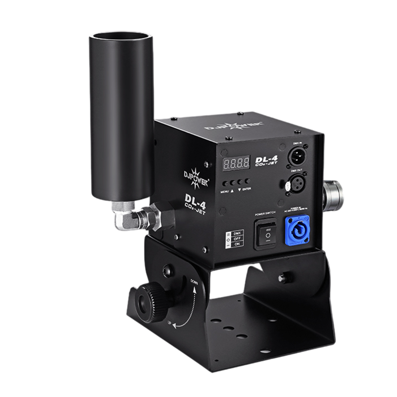 The CO2 Jet is intended to electronically blow white smoke plumes of CO2 from a distance. As soon as the CO2 leaves the cylinder through the CO2 Jet’s secured high-pressure hoses, it converts into gas. This formation of gas is accompanied by a low noise and a solid white plume of smoke will be visible. The length of this plume can reach 8m height. This depends on the air humidity: in case of a high degree of air humidity, the smoke plume will be larger and in case of a low degree of air humidity it will be smaller.