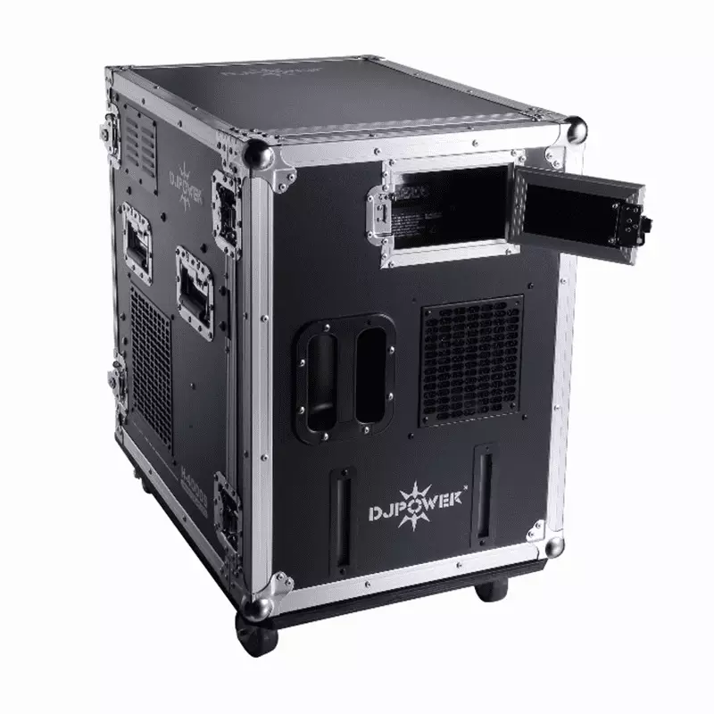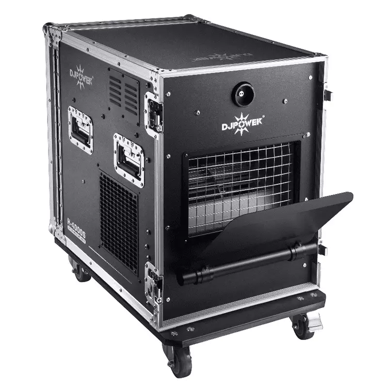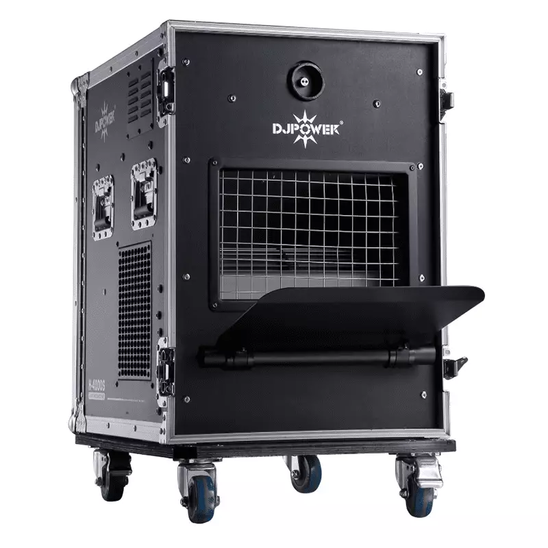 The H-4000S Wave Hazer from DJ POWER is a first-class water-based hazer for the demanding professional market and is specially designed for large shows and events. It is built into an aluminum alloy flight case and is very portable despite its size and weight thanks to the mounted wheels. The robust design combined with enormous power makes the H-4000S a top-class device. Thanks to the enormous output of 1500 m³/min, it is possible to generate an exceptionally fine haze within a short time, which can be ideally distributed even in large rooms thanks to the swinging flap. The H-4000S is therefore the ideal choice for theaters, large clubs, stage productions and more.