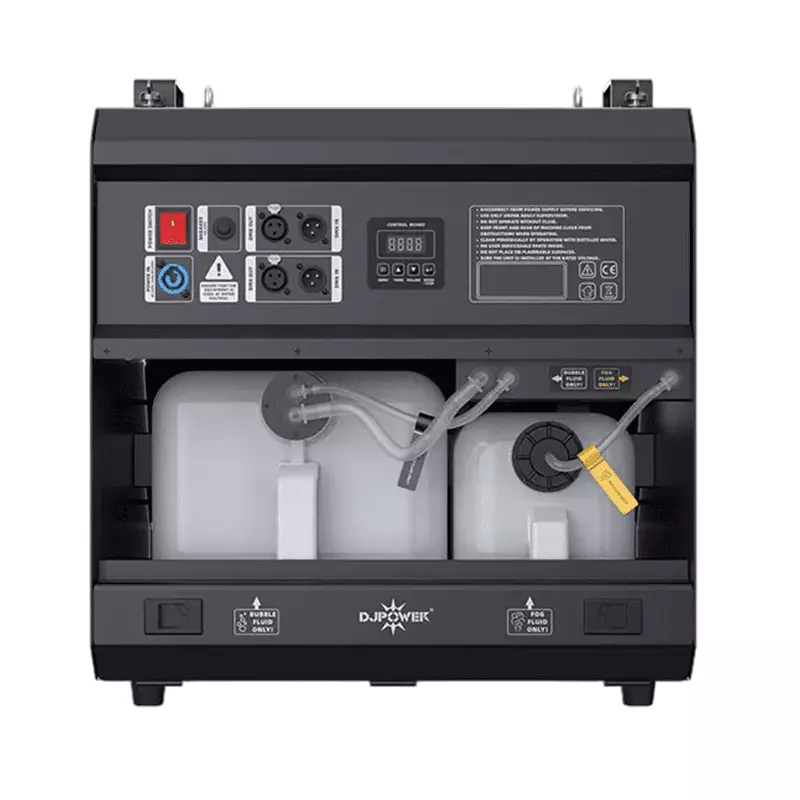 The WP-4L is a newly launched professional 4-nozzle bubble fog machine from DJPOWER. Its innovative design generates a high volume of bubbles filled with fog, while minimizing residual haze at the nozzles—eliminating excess fog that can interfere with the visual effect. Equipped with eight 8W RGBW LED lights, the machine enhances the bubble fog effect with vibrant, colorful illumination. A built-in liquid collection system at the nozzle prevents bubble fluid from dripping onto the floor. Additionally, the bubble fog fluid is sealed for long-term storage, allowing the machine to operate reliably even after extended periods of inactivity. Ideal for large-scale performances, product launches, nightclubs, and similar high-impact events.