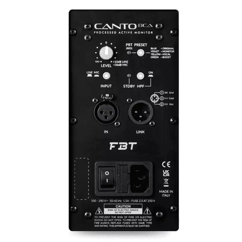The FBT CANTO 8CA features lightweight gas-injected polypropylene enclosures. Available in black or white finish, the FBT CANTO 8CA provides fixed installations with an elegant design that blends into any decor. The asymmetrical shape of the FBT CANTO 8CA cabinet also allows use as a powered floor stage monitor.