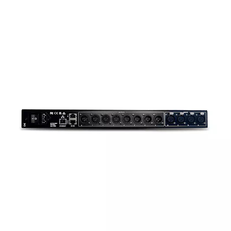 The DLM 480 is a DSP based 4 inputs x 8 output digital loudspeaker management processor, ideally suited for fixed installation. The front panel control with LCD display offers users an intuitive interface designed for ease of use and efficiency. The menu system allows for seamless navigation through various settings and options, providing users with a user-friendly experience. When it comes to networking options for DLM 480, users can choose between Ethernet or RS 485 for larger systems. It combines the function of conventional products in a compact 1 U unit with extensive PC remote control capabilities. Routing is freely assignable from the two inputs to the six outputs.