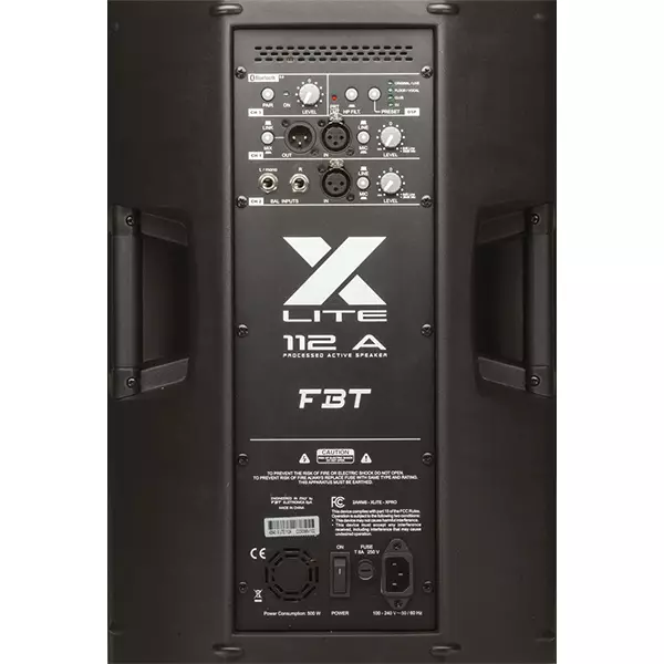 The bi-amplified FBT XLITE 112A active speaker feature a 1200W low frequency amp and a 300W high frequency amp.