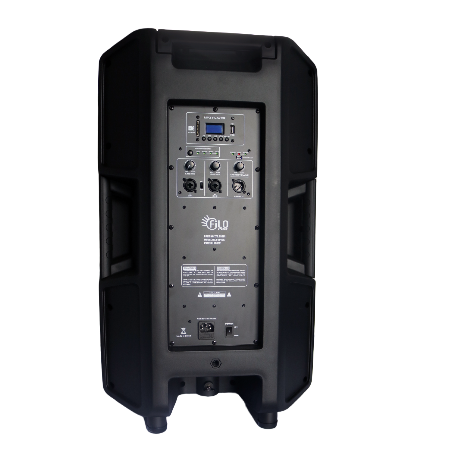 The FDP15A 15-inch Pro Active Molded Speaker features a Bi-Class D amplifier, multiple genre-specific presets, Bluetooth and USB/SD playback, and an LCD display for professional PA performance.