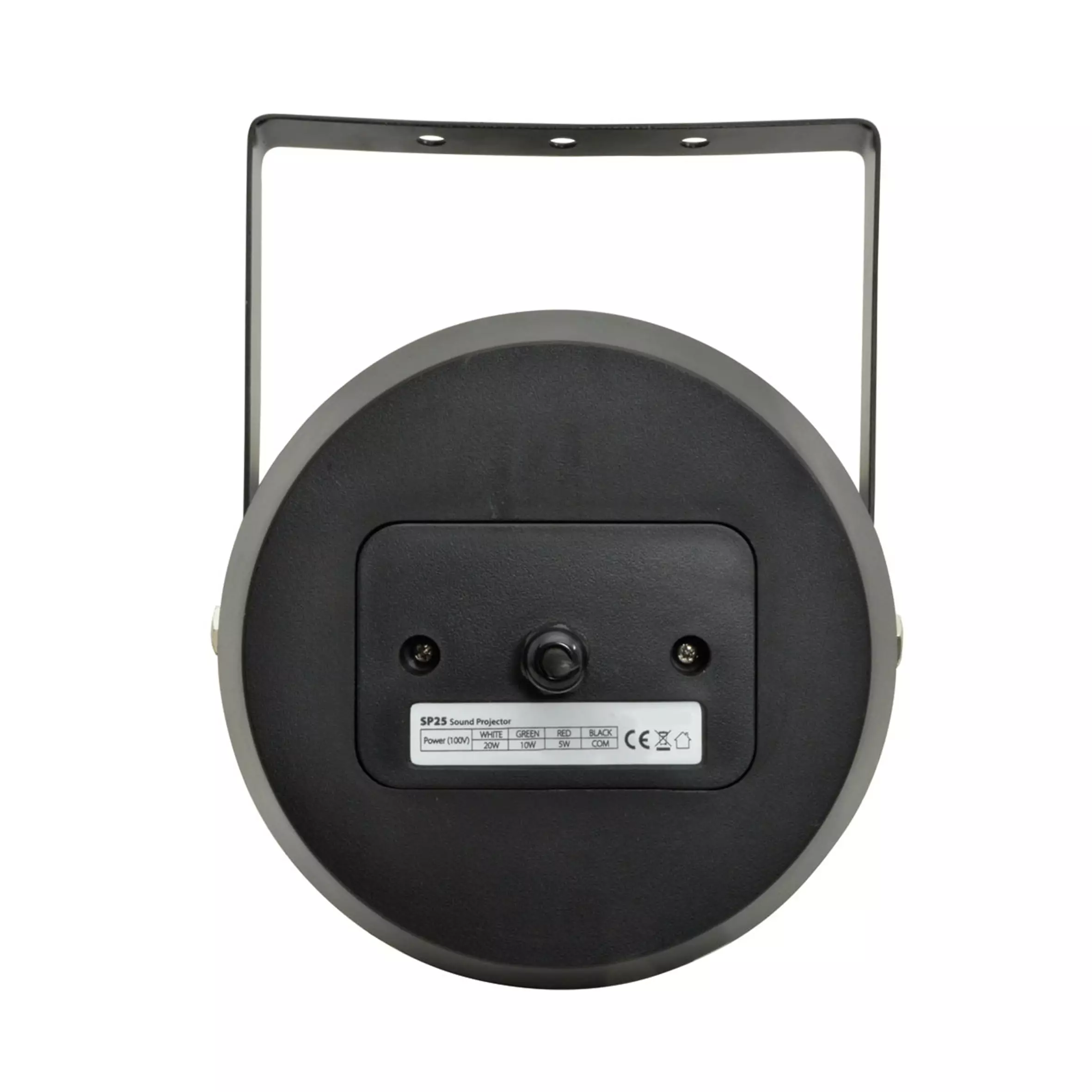 Weatherproof sound projectors with injection-moulded body and coated steel grille. Suitable for indoor or outdoor music and speech applications. Fitted with 350mm four core input cable for different power ratings. The transformer may be bypassed internally to give an 8 Ohms, 25W load.