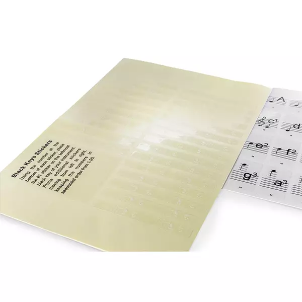 Removable Transparent Piano and Keyboard Note Stickers for Kids & Beginners. Helps you learn to play the keyboard and read music faster! Can be removed easily and will not damage the keys.