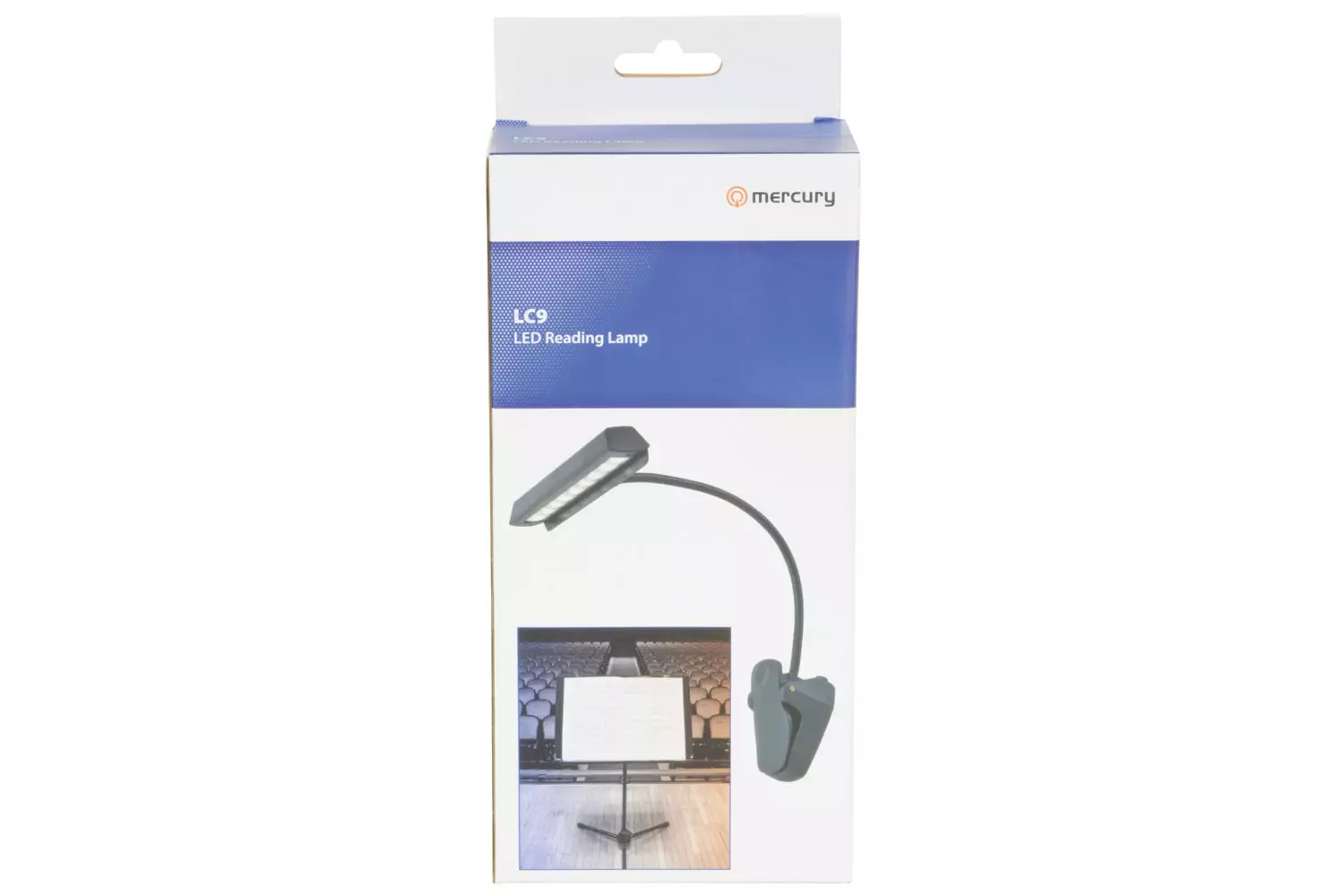 Portable LED Clip On Reading Lamp with a flexible stem and base clamp allowing you to attach to a book, music stand, laptop or tablet. Featuring 9 LEDs and 2 brightness settings, it provides uniform light coverage over a large surface area so you can work or read where ever you are. Powered via batteries or mains USB adaptor.