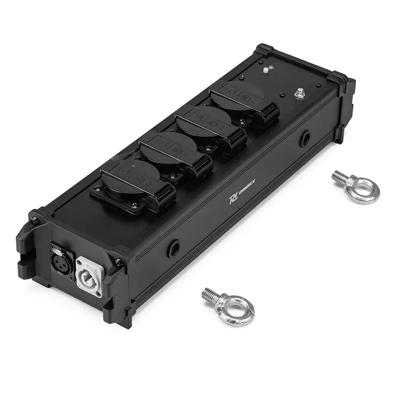 The PDConnex PBS50 is a powerhouse designed to cater to all your lighting and backline equipment power needs. Engineered with versatility and convenience in mind, this power distribution unit with P-Con connections and 4 Shuko power outputs is here to simplify your setup and enhance your workflow. One of the standout features of the PBS35 is its built-in 2.4 GHz Eazylink DMX receiver. This integration takes your lighting control to the next level, allowing for wireless DMX communication with ease.