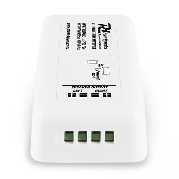 The BT10 compact Bluetooth audio amplifier allows the most standard low impedance (8 ohm) speakers to be connected, perfect for ceiling and wall mountable speakers. The device can be linked to the most smart phones/ tablets that has Bluetooth connection and any music played will be streamed through the built-in 2x 15W amplifier. The volume is also controlled via the smartphone / tablet.