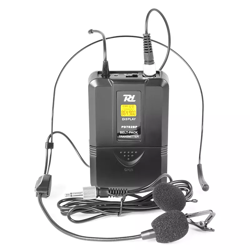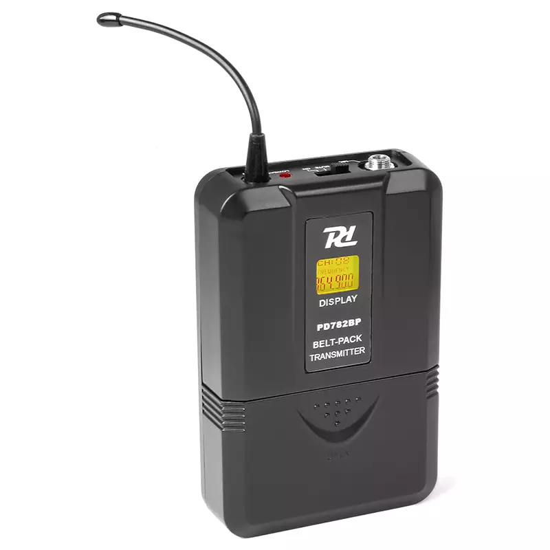 Bodypack transmitter for PD780 series UHF wireless microphone systems. Equipped with LCD display on bodypack, selectable channels and mute switch. Ideal for handsfree applications, vocals, presentations etc.