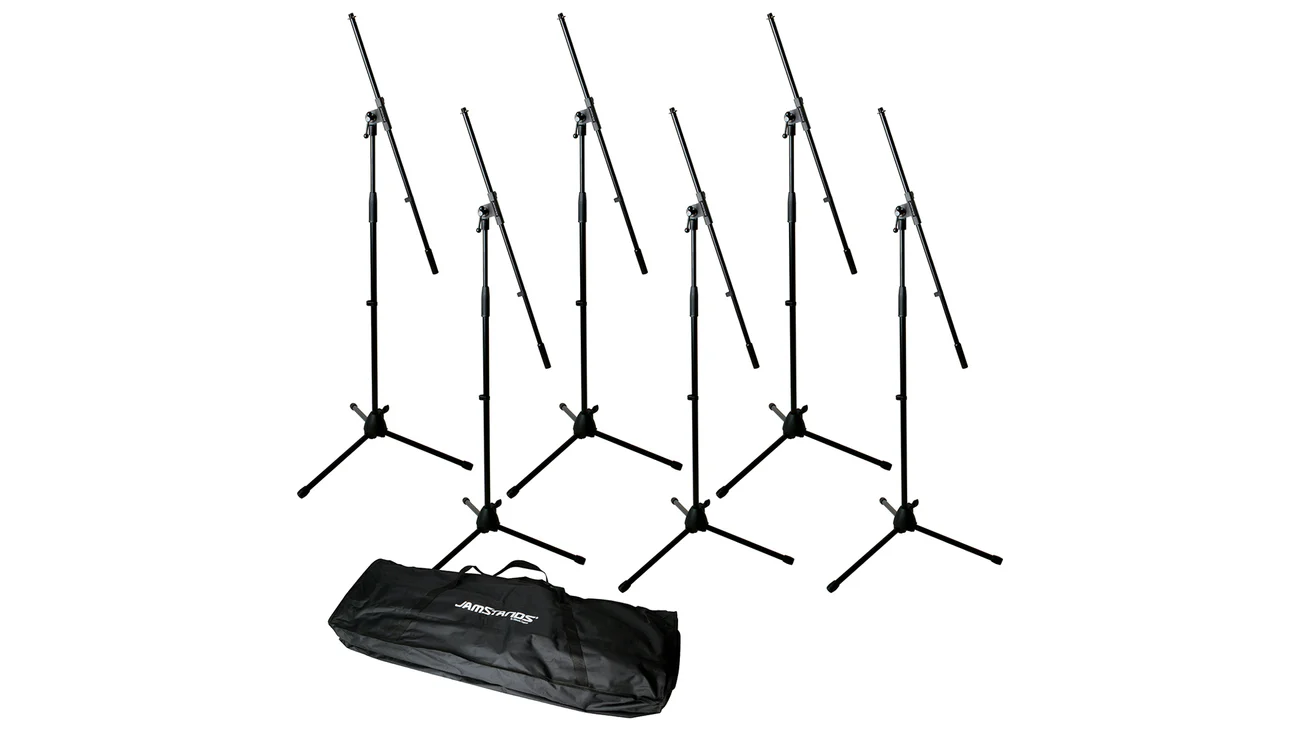 The JS-MCFB6PK is the perfect addition to any school program, house of worship, and garage band! It includes six tripod microphone stands with non-detachable 31″ fixed-length boom arms. So, whether you have a choir, six singers, two singers and drums, three singers, one harmonica player, and two bag pipe pipers, or whatever arrangement you may have, with the JS-MCFB6PK you’ll have plenty of mic stands to go around! What’s more, we’ve included a FREE handy carrying bag to transport and store your six mic stands in.