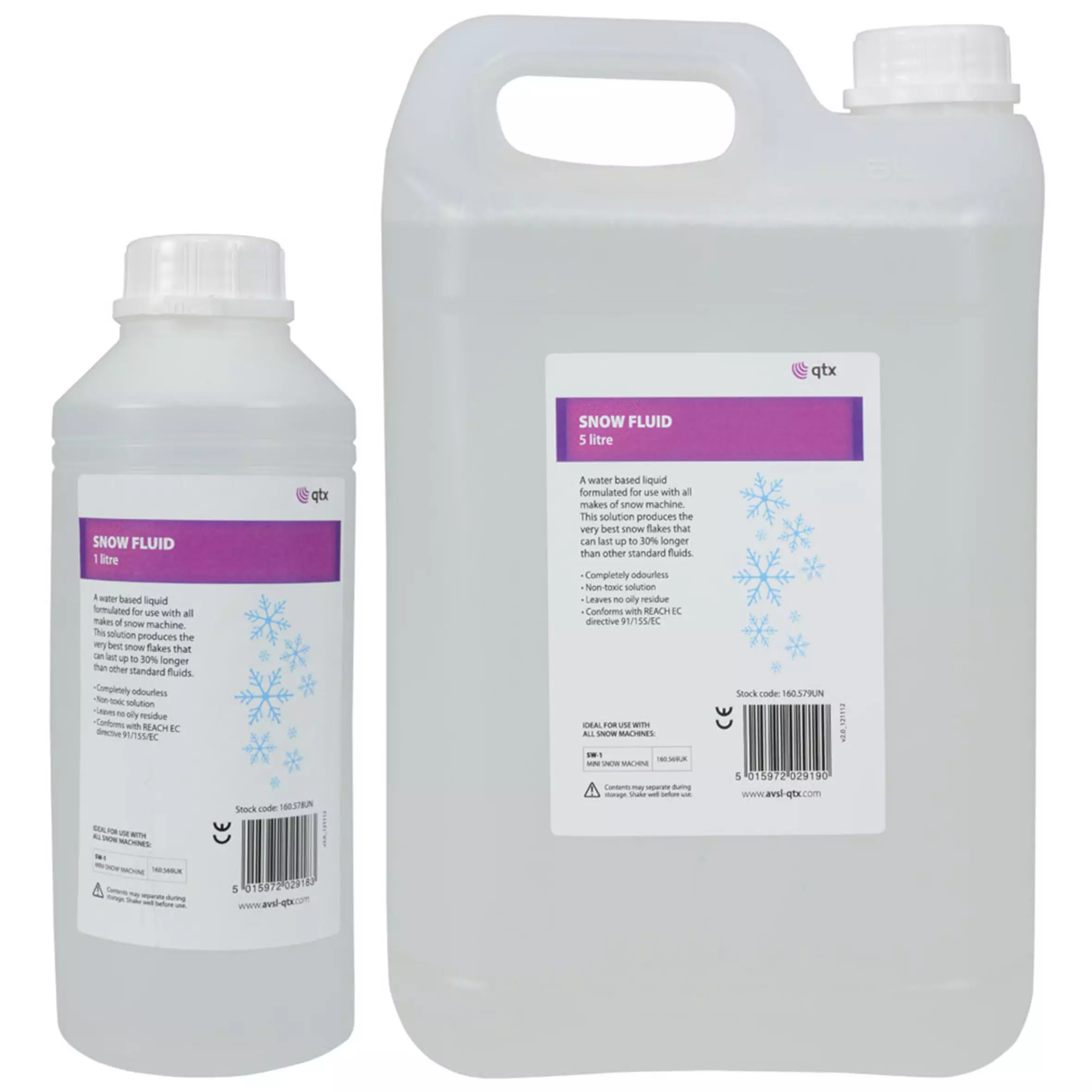 A water based liquid formulated for use with all makes of snow machine. This solution produces the very best snow flakes that can last up to 30% longer than other standard fluids.