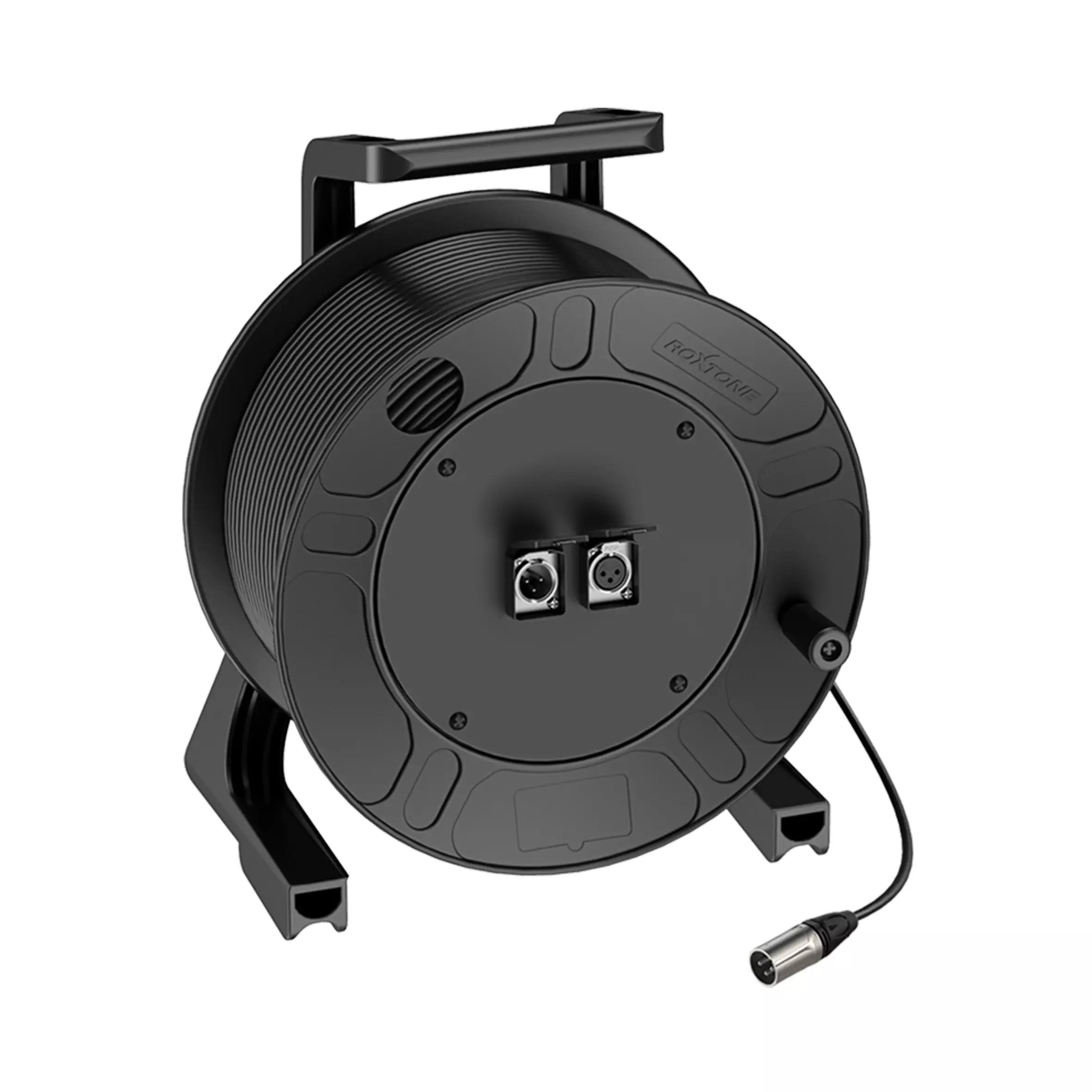Professional unbreakable cable drum system, assembled with DMX cable and ROXTONE connectors.
