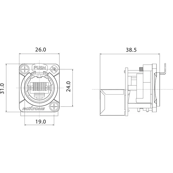 - Front and rear mountable accommodates any RJ45 plug and XLR type RJ45 plug