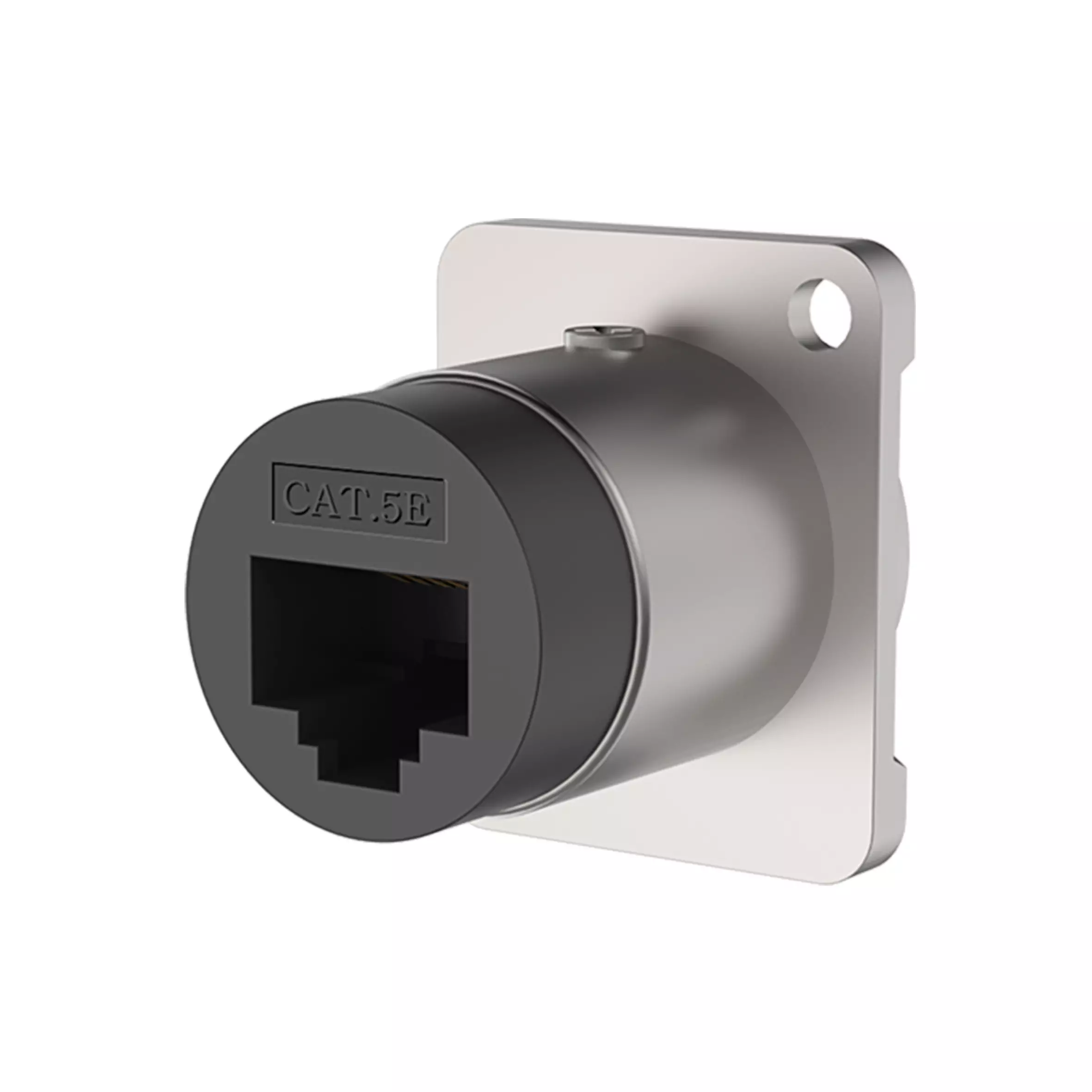 - D-size feed through chassis RJ45 adapter designed for CAT5e