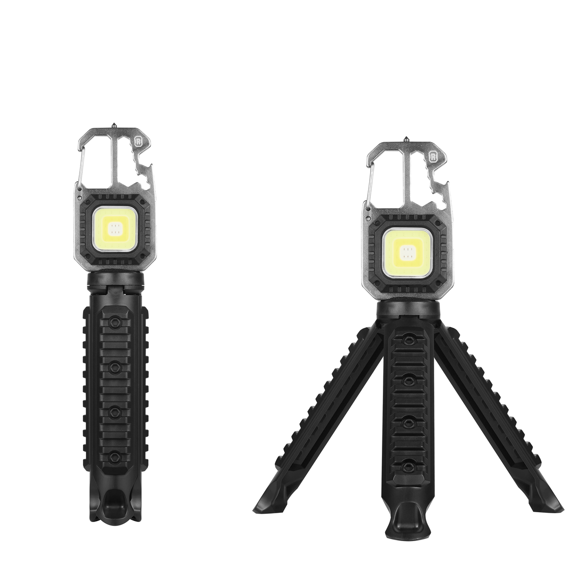 Illuminate your path and capture the perfect shot with the Rugged Multi-Function Keychain Light with Tripod. This versatile and compact device is designed to provide powerful lighting and steady support for your photography and outdoor adventures.