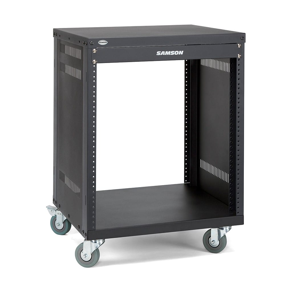 Samson’s rugged equipment racks are solid steel and feature fully enclosed steel side panels. The racks are set upon 4 heavy-duty, 3-inch (75 mm) casters with locking fronts. Each Samson equipment rack includes a single-space, flanged blank panel. The truly innovative thing is that the unique steel support bar construction allows the racks to be assembled to accept either the European or US thread sizes.