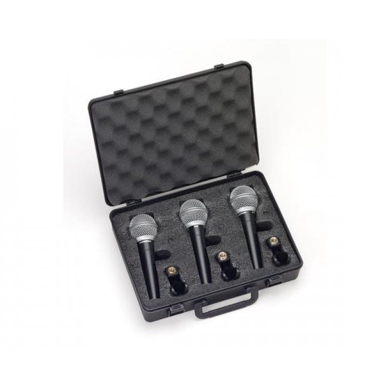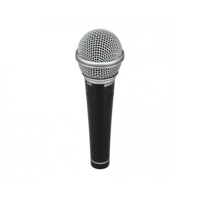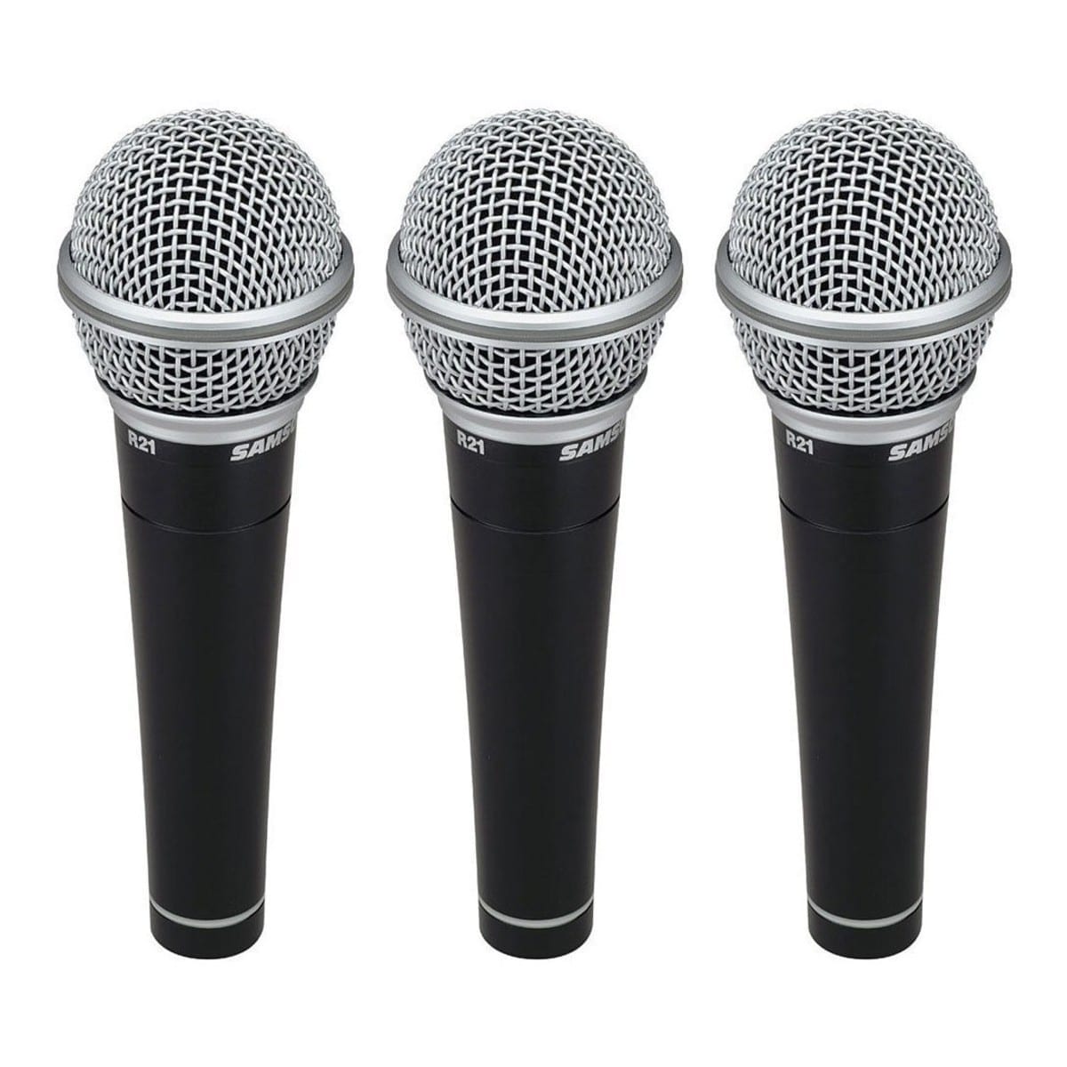 The R21 Dynamic Vocal/Presentation Microphone 3-Pack features three R21 mics, each with a tight cardioid pickup pattern for maximum gain before feedback, a dual stage windscreen, heavy gauge mesh and anti-dent ring for enhanced protection, as well as gold-plated XLR pins that ensure positive connectivity.
