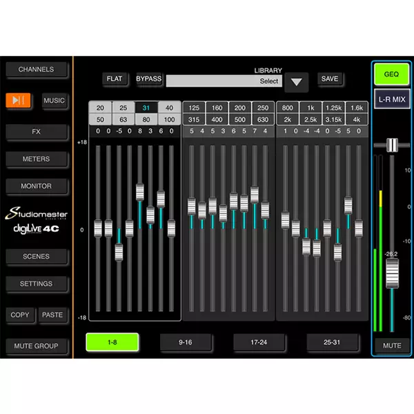 The surprisingly comprehensive DSP section takes care of the behind the scenes processing including Parametric EQ, Graphic EQ, Compressor/Gate, Digital Effects for Reverb and Delay plus many more useful features to take the effort from the mixing and leave the artist to concentrate, without distraction, on their performance.