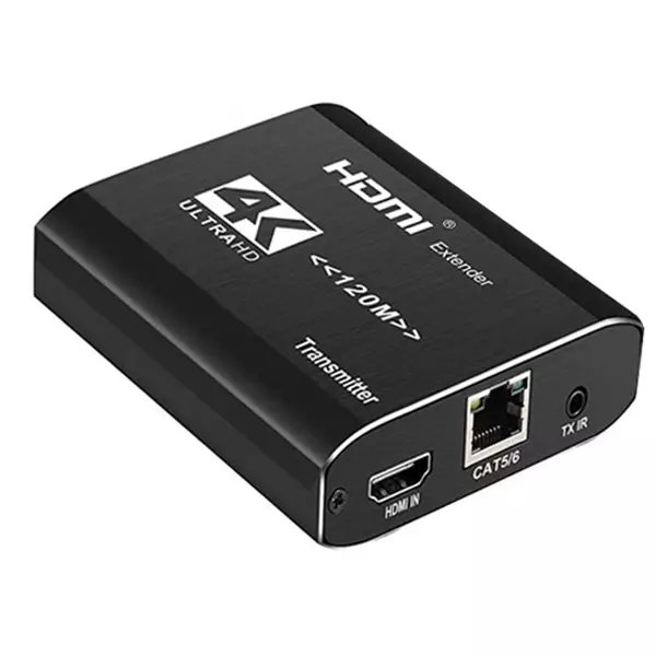 The extender uses single cat-5E or cat-6 (recommended) cables instead of HDMI cable to transmit high definition signal up to 120m. It is designed to supply long distance transmission of high definition signal. A solutions for noise, space and security concerns, data center control, information distribution, conference room presentation, school and corporate training environments.
