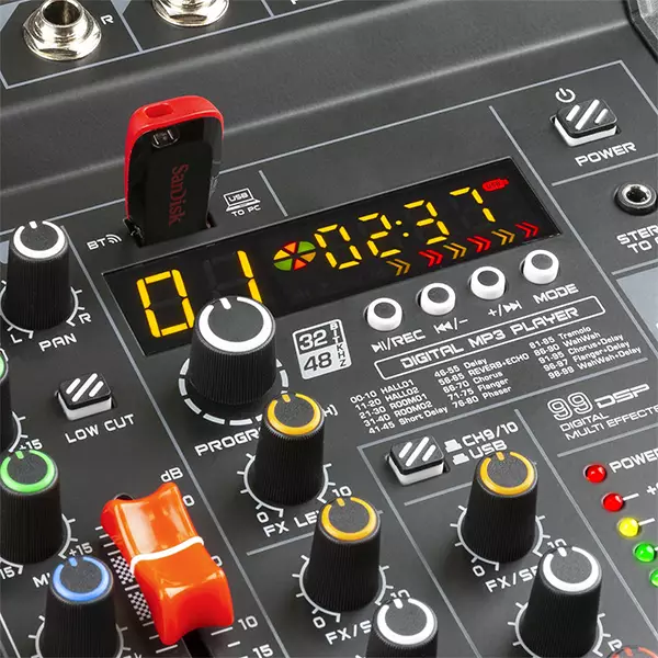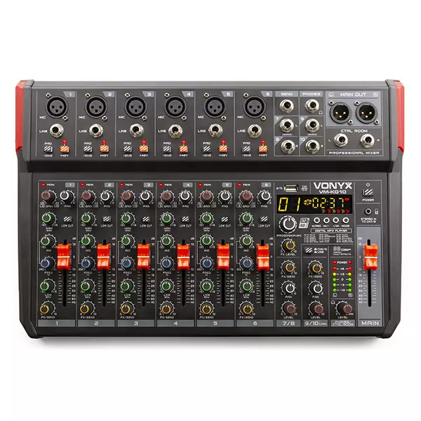 The VM-KG mixers are flexible and efficient compact mixers suitable for home music recording, webcasting, singing, parties and many other applications. With flexible channels, digital audio streaming capabilities and a convenient built-in USB interface, the VM-KG mixers have plenty of features to keep the party going. These mixers are all equipped with DSP, an echo effect and have a built-in USB player with display for MP3 playback.