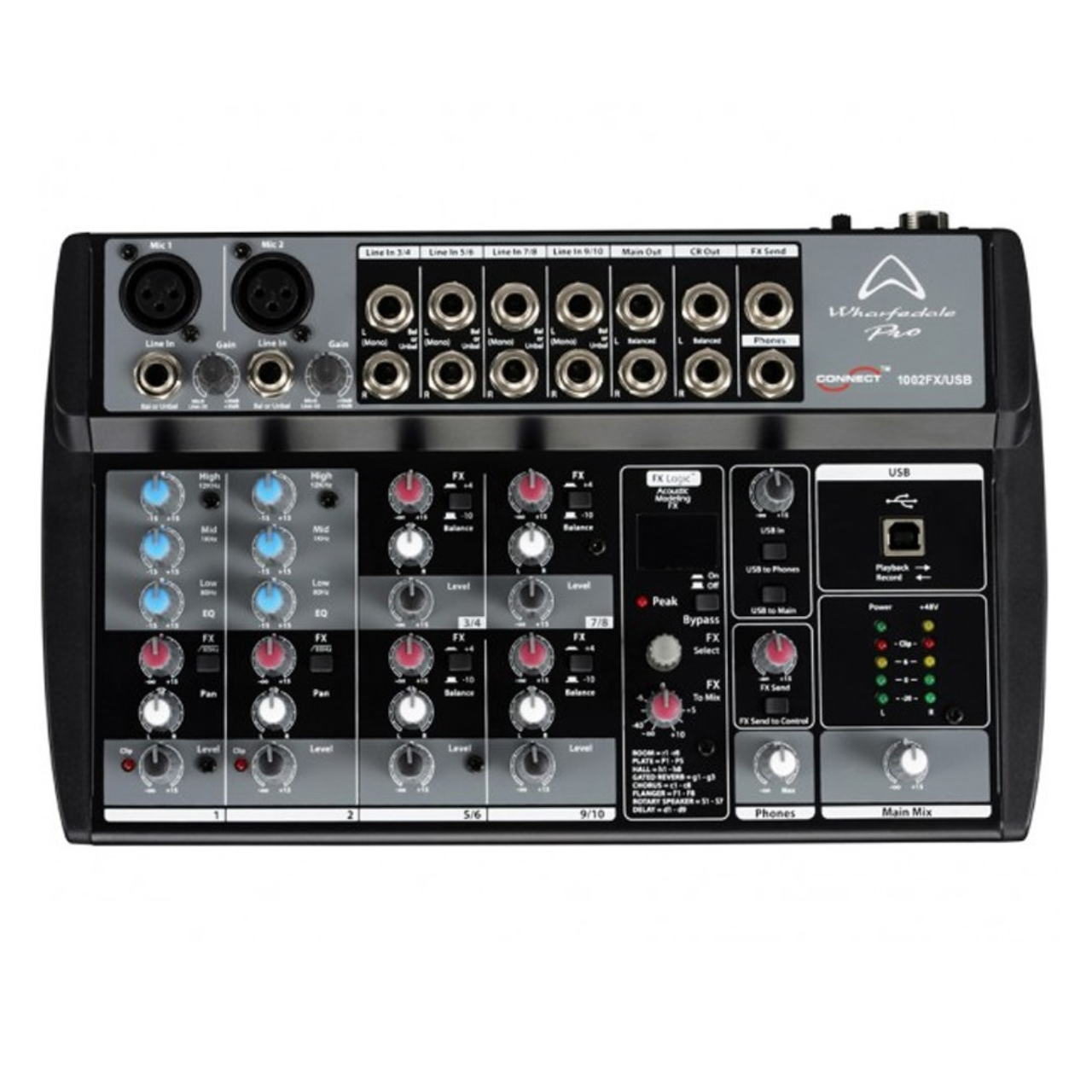 The Wharfedale Pro Connect 1002FX/USB is a compact mixing desk with massive capabilities. If you need a portable mixing desk and you do not want to sacrifice space for connections we have managed to condense ample inputs, outputs digital FX, and a USB audio interface into a small footprint mixer which is at home in the studio as it is the road.