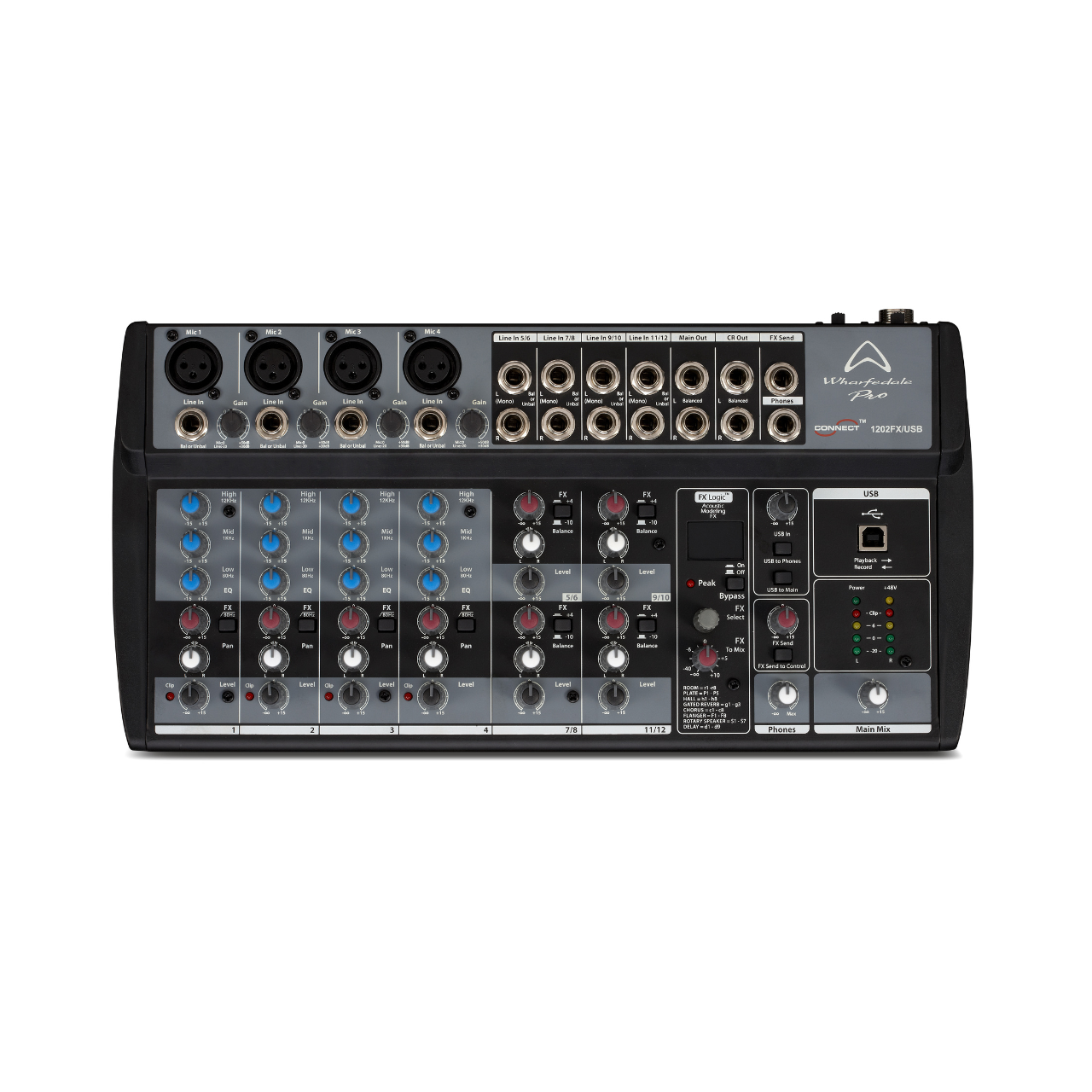 The FX logic bit DSP offers a total of 56 effects. These include a variety of delays, reverbs, chorus, and rotary speaker algorithms, achieving a professional touch on your mix and lending itself to more creative sound engineering styles. Individual FX sends controls on each channel meaning your chosen FX can be applied with accuracy.