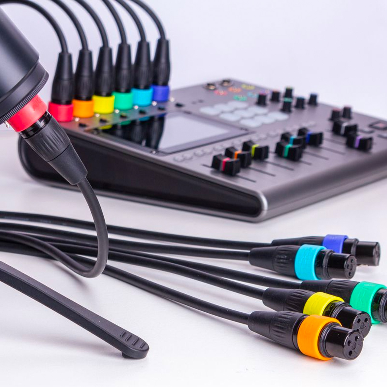 With 6 pairs of color-coded rings (12 rings total), the Zoom XLR-6c colored mic cable rings are an easy way to identify who has what mic and what channel it is plugged into. You never have to adjust the volume, mute, or turn on or off the wrong mic by accident.
