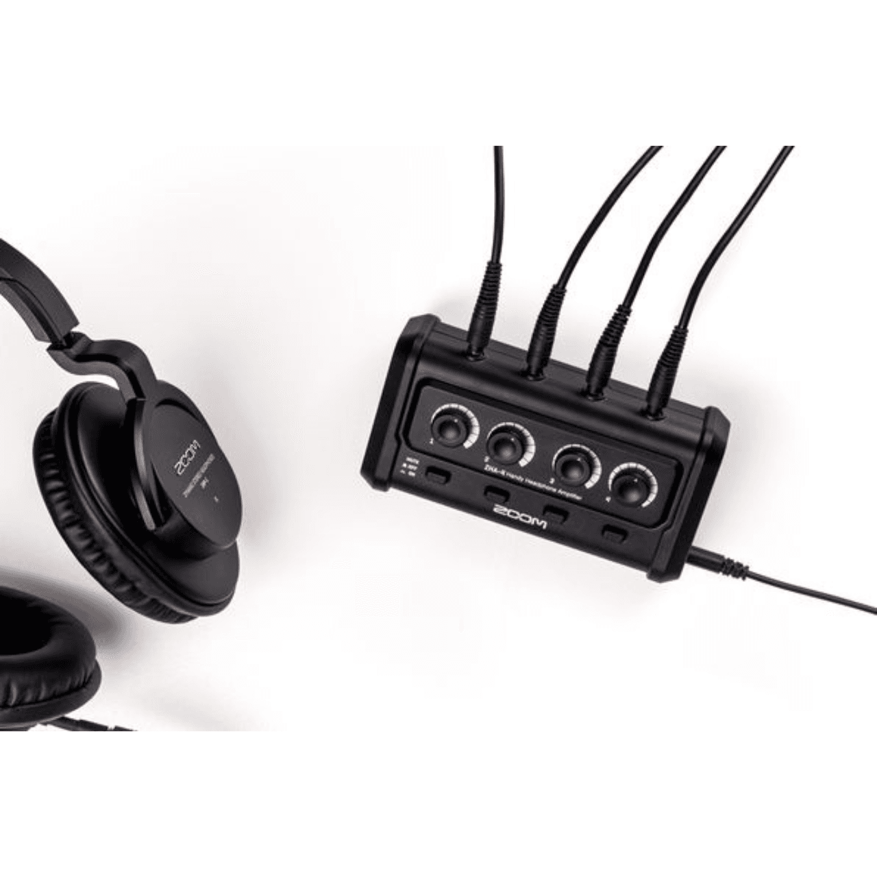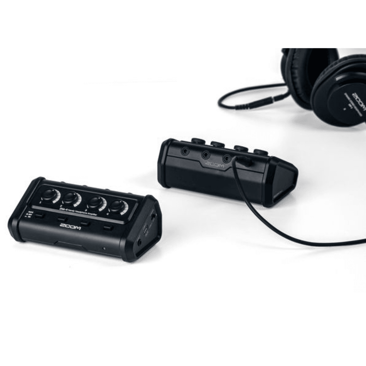 The ZHA-4 splits a single stereo headphone output into four separate powered 1/8˝ headphone jacks, each with their own volume and mute control. Perfect for bands, podcasts, productions, and more.